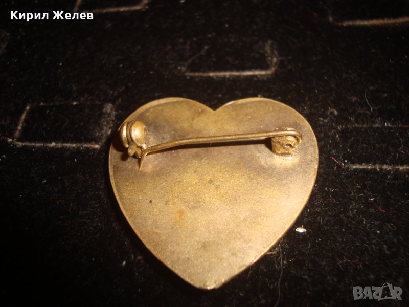 СТАРА ФЛОРАЛНА с ЕМАЙЛ ЛАК БРОНЗОВА РЕТРО БРОШКА СЪРЦЕВИДНА 21675