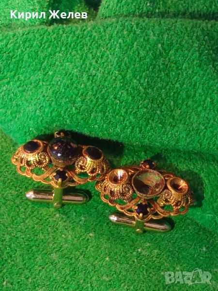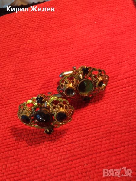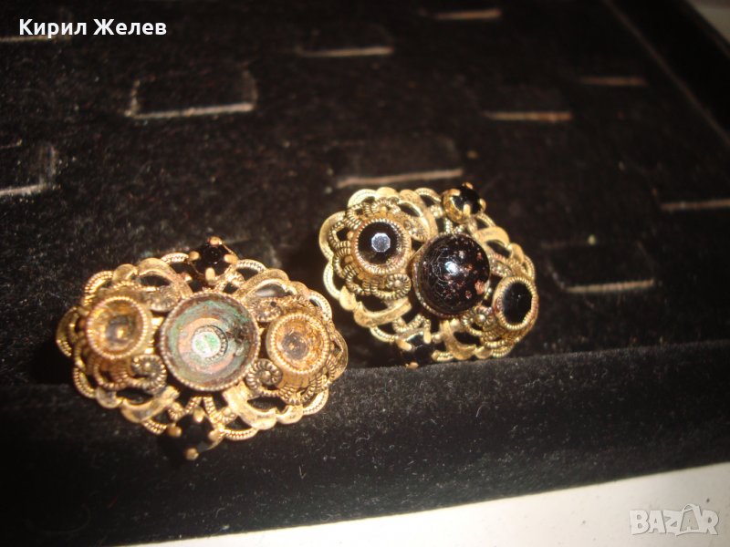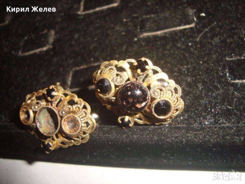 СТАРИННИ ФИЛИГРАННИ БРОНЗОВИ ПОЗЛАТЕНИ БУТОНЕЛИ с ЯСПИС и ГРАНАТ МАЙСТОРСКИ 19855