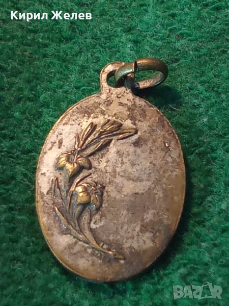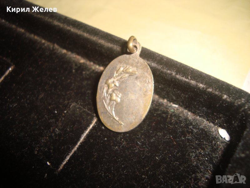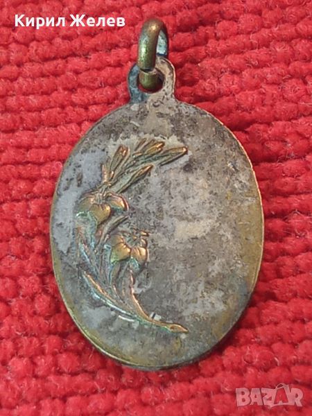 СТАРА ДВУСТРАННА КАТОЛИЧЕСКА ПОСРЕБРЕНА БРОНЗОВА ИКОНКА МЕДАЛЬОН 21687