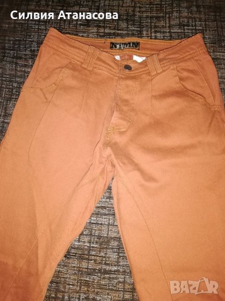 Панталон На тъмно оранжев мек памучен, елегантен и интересен модел, размер S нов, без забележки. Има го и в тъмно кафяв цвят.