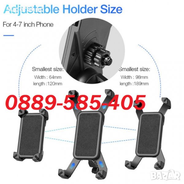 Висококачествена стойка от здрава пластмаса за телефон за колело, мотор, мотопед, тротинетка, скутер, тротинетка и други. Регулируем ъгъл на наклон, завъртане на 360 градуса. Възможност за вертикално и хоризонтално позициониране на устройството.