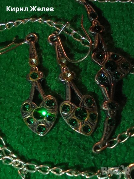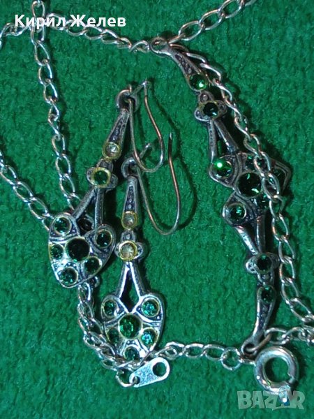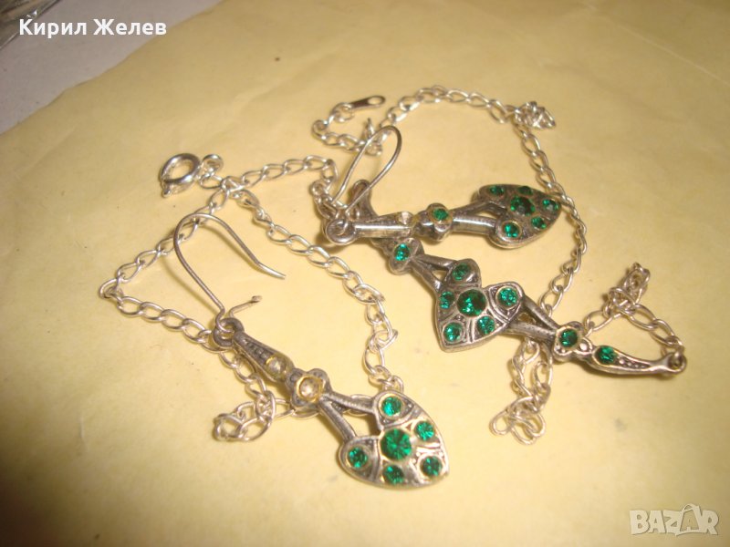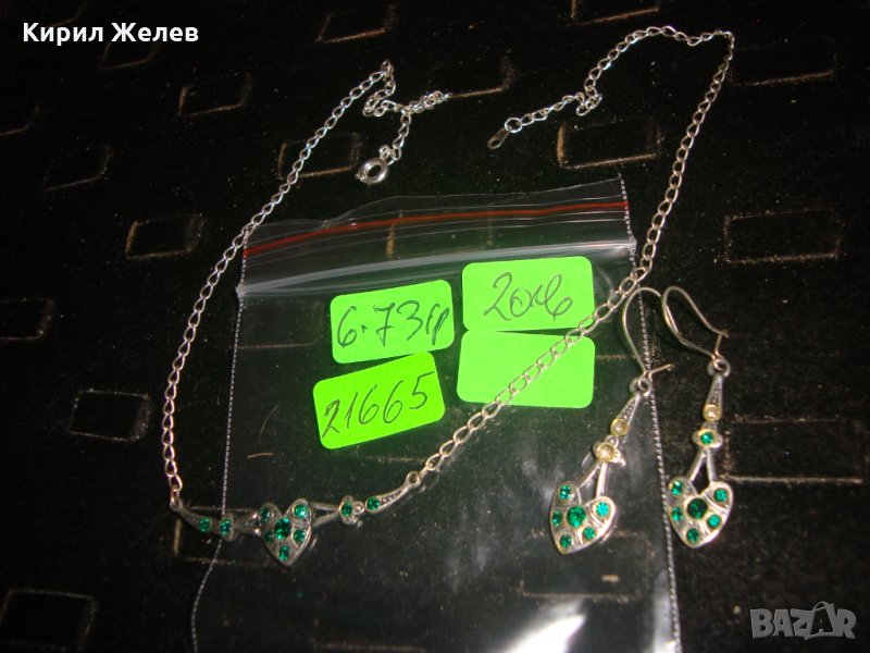ПОСРЕБРЕНО НЕЖНО КОЛИЕ и ОБЕЦИ със ЗЕЛЕНИ КАМЪНИ ОЛИВИН 21665
