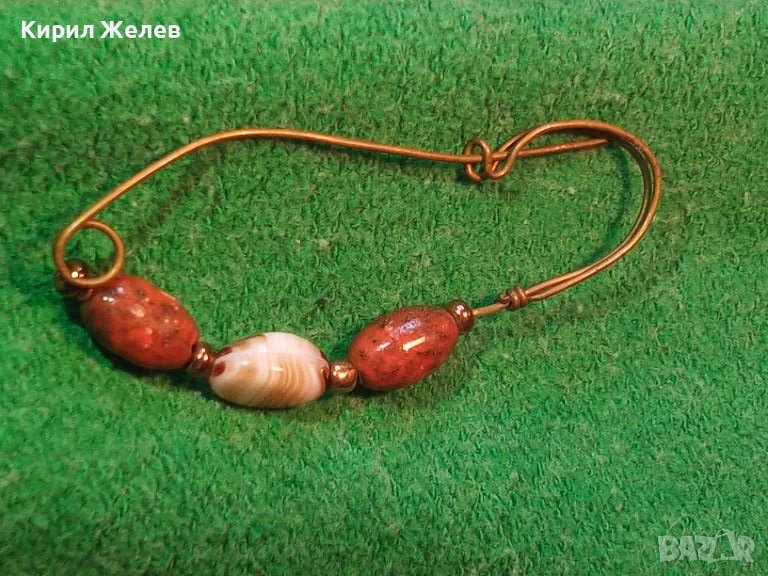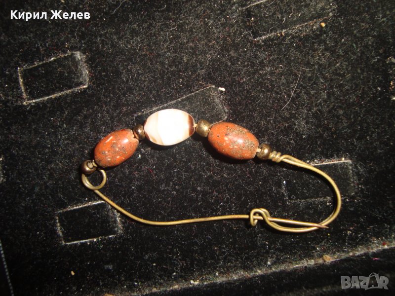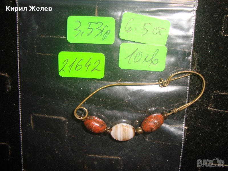 ВИНТИДЖ БРОШКА АРТ ИГЛА БРОНЗОВА с ЯСПИС КАМЪНИ 21642