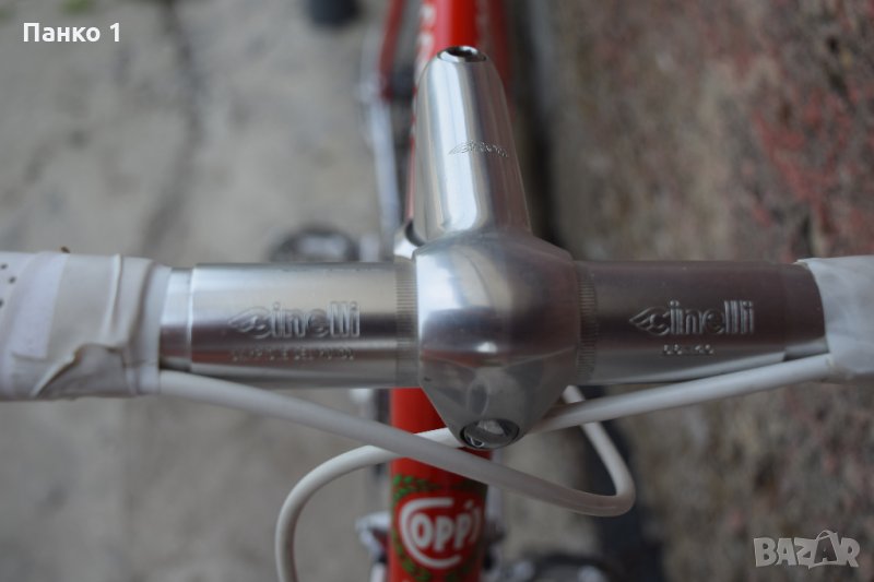 Рамката е размер 56см седалкова тръба, хоризонталната тръба също е 56см. Рамката и вилката са направени от тръби Columbus Neuron, което се нарежда най-отгоре в йерархията на Columbus за годините си. Боята е в уникално състояние, почти без забележки. Целият монтаж е 8 скоростен Shimano Dura Ace 7400-7403, включително и средното движение. Главините са Dura Ace 7403, Шините са Mavic Open 4 CD , каплите нямат забележка и вървят право без хрупане. Кормилото и колчето за кормило са Cinelli. Колчето за седалка е Fausto Coppi, седалката също е Selle Italia Fausto Coppi с фабричен номер 4243 (От тази седалка са произведени само 10000 бройки, лимитирана серия). Чашките за вилката са неизвестен за мен бранд, но са много красиви и нямат една драскотина, пожелание имам чашки 7400 с които мога да ги заменя. Педалите са японски Kyokuto Pro Ace, куките са Christophe с кайшки Paturaud(Рядък модел кайшки). Кошнича за бидон - Minoura Dura Cage