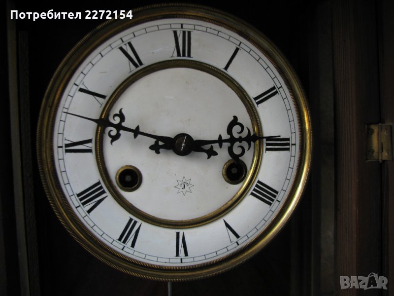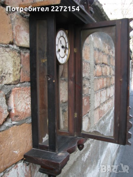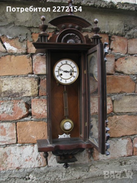От 80 години на 19 век,работи точно и звъни на 1/2 и цял час.Има няколко отлепени елемента,но важното е,че са налични,показани са на последната снимка.С порцеланов циферблат и махало и оригинален ключ за навиване,височина точно 1 метър. Цената му е крайна и за друг град, изпращам по Еконт след като получа 25 евро капаро.