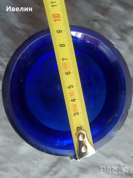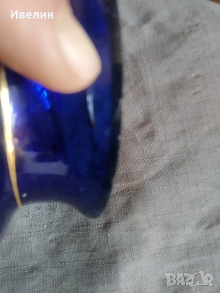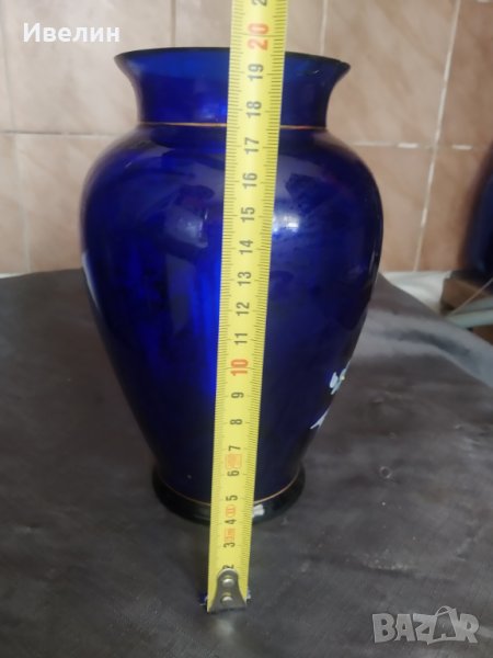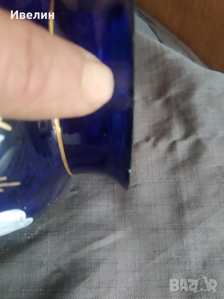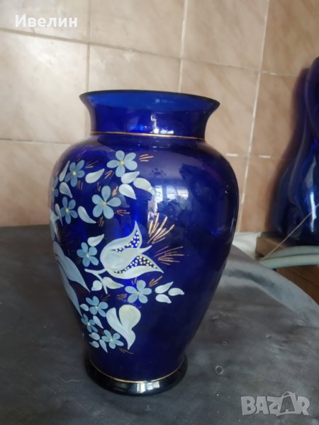 ваза в стил арт деко.синю стъкло,ръчно рисувано.леки забележки-посочени.