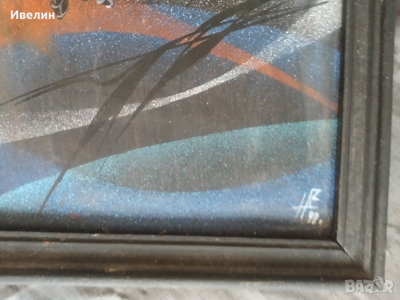 картина-коне.масло на шперплат,подписана.дървена рамка.състояние и размери видни на снимките.