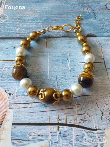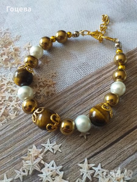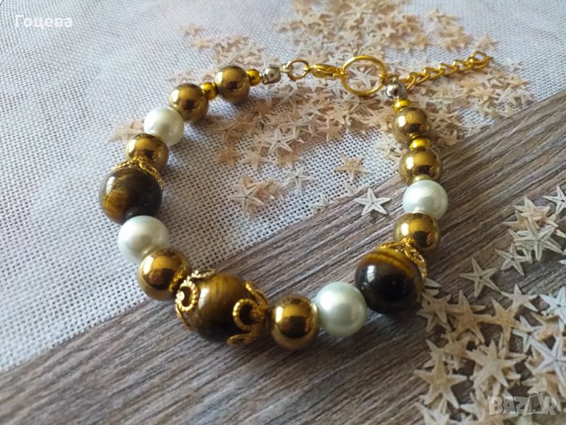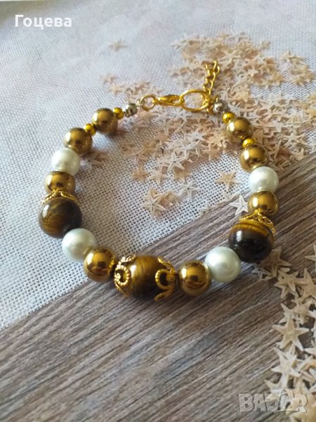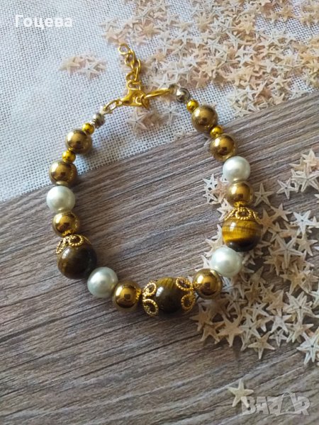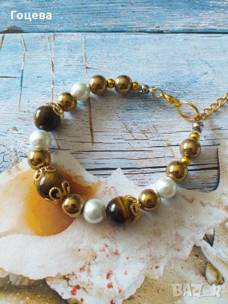 Прелестна гривна от новата ни колекция с красиви камъни Тигрово око, златен Хематит и кристални пер → Обява 32536487