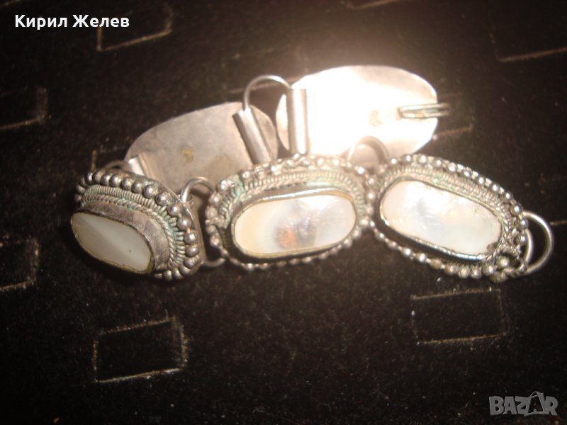 СТАРА ПОСРЕБРЕНА ОРИЕНТАЛСКА ГРИВНА ЕТНОРАФСКИ СТИЛ с ШЛИФОВАН БЯЛ ИВИЧЕСТ АХАТ 21701