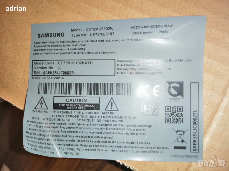 BN94-12784T , BN41-02568B , UE75MU6102 → Обява 32538433