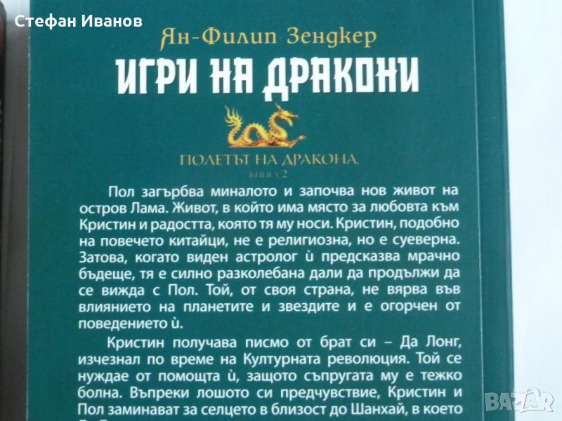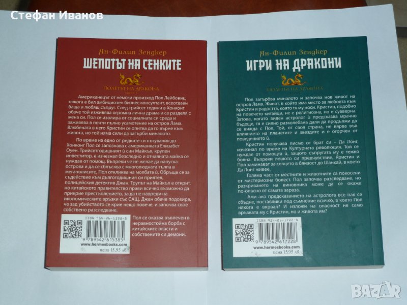 Продавам две нови книги "Шепотът на сенките" - първа и втора част от поредицата Полетът на дракона. Автор Ян - Филип Зендкер. Нови, нечетени. Цена 28лв. По отделно не се продават.