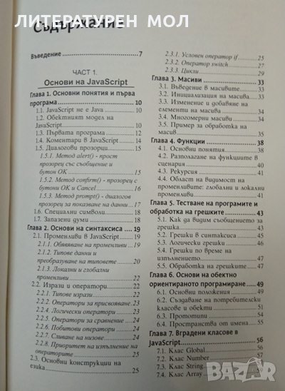 Първата част на книгата подробно разглежда JavaScript. Тук е представен синтаксисът на езика - ще