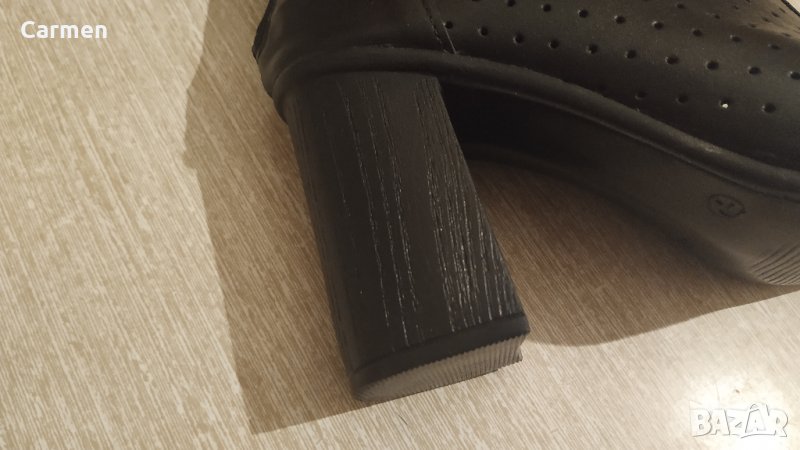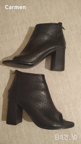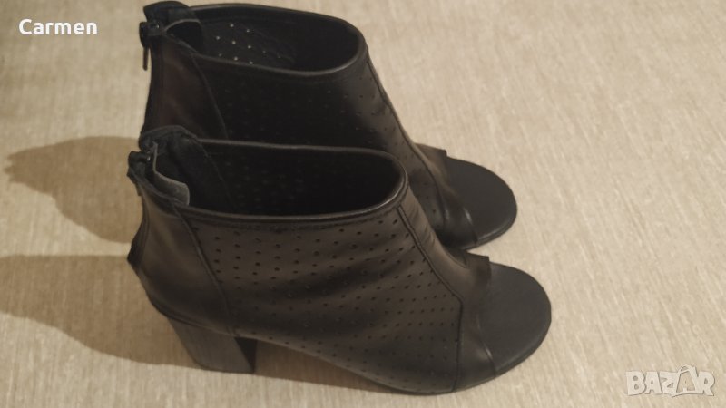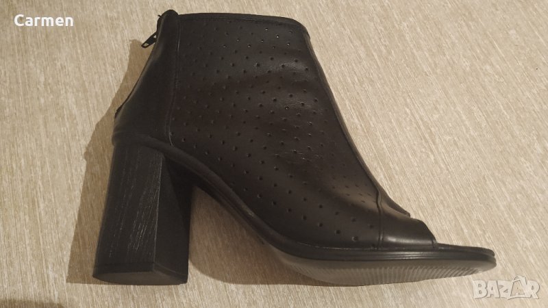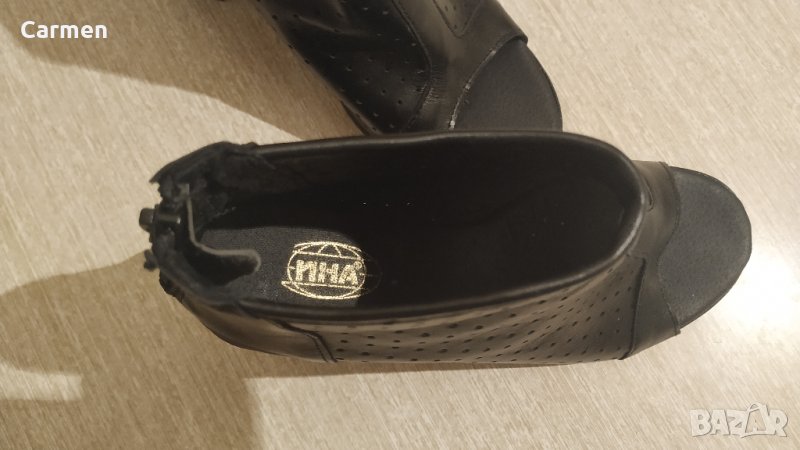ОРИГИНАЛНИ, произведени в България от фирма ЕТ Ина! Видно от снимките много качествена и прецизна изработка! Подходящи както за ежедневно носене, така и за по-специални случаи. Изчистена черна визия, отворена обувка за пролетта и лятото! Съвместима с всякакъв вид дреха.