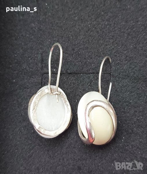 Височина 3см / Ширина 1см / Закопчаване - върбило / Материал - сребро 925 и светло бяло котешко око или хризоберил. Котешкото око е разновидност на кварца.