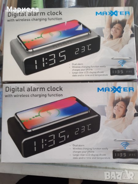 будилник MAXXTER с вградено индукционно зарядно устройство Функционален часовник с LED цифров дисплей Светлинно време и температура