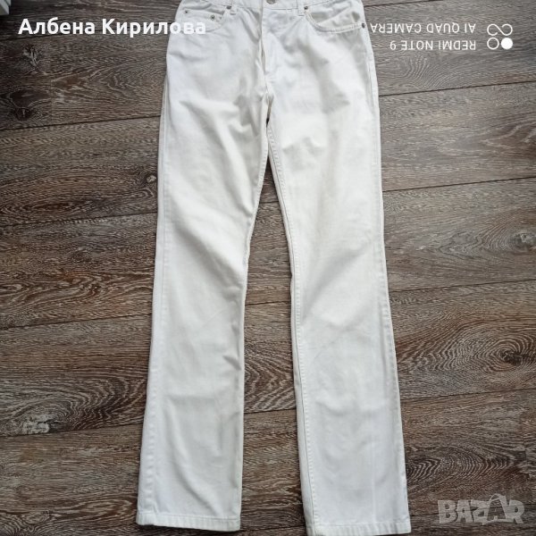 Бели, супер мекички дънки на Лотус, 27номер. Не са слагани. Талия 34см, крак24см, дълги 105см., вътрешна дължина крачол 77см., ширина глезен 18см. 100%памук.