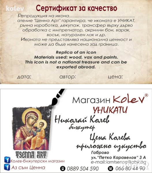 Получавате иконата със сертификат за автентичност