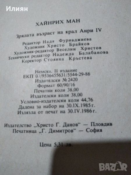 Хайнрих Ман. Състоянието е добро, но я имам и в отлично - цена 5лв. Тази си е 3 лв. И двете са сдебели корици.