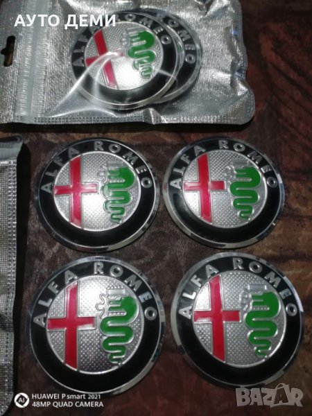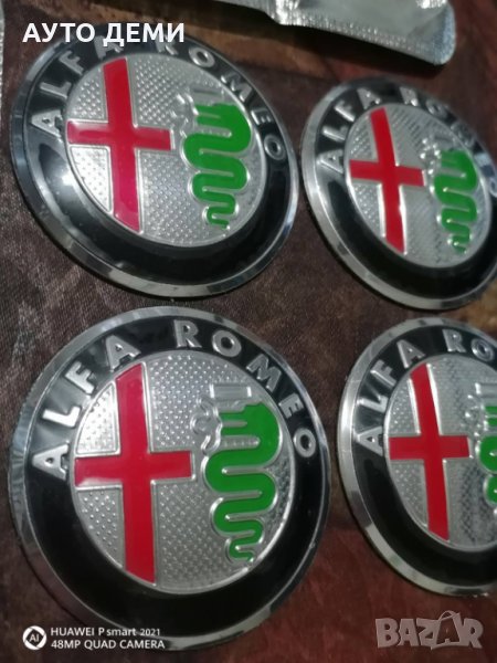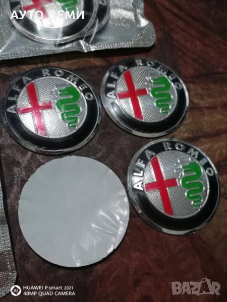 Продавам качествени релефни метални самозалепващи стикери с цветни емблеми на Алфа Ромео Alfa Romeo за централна капачка на джанта с размер 60 мм.