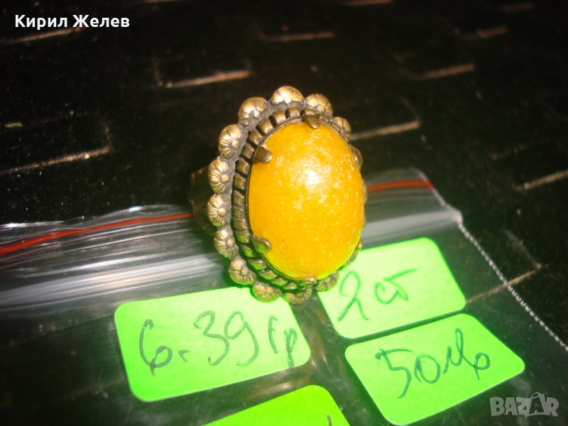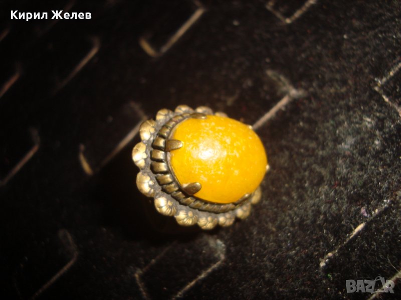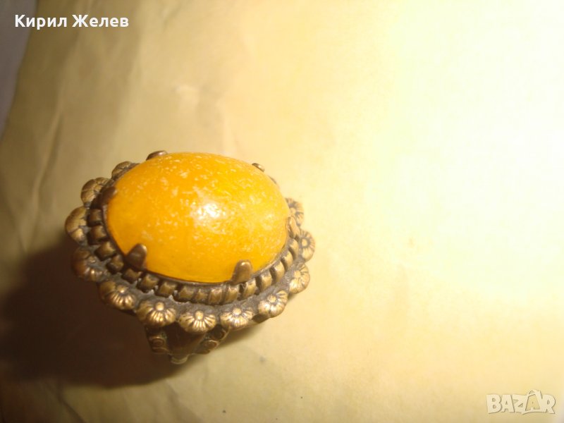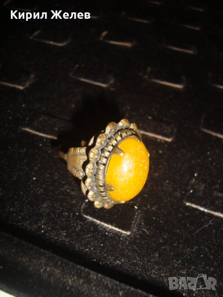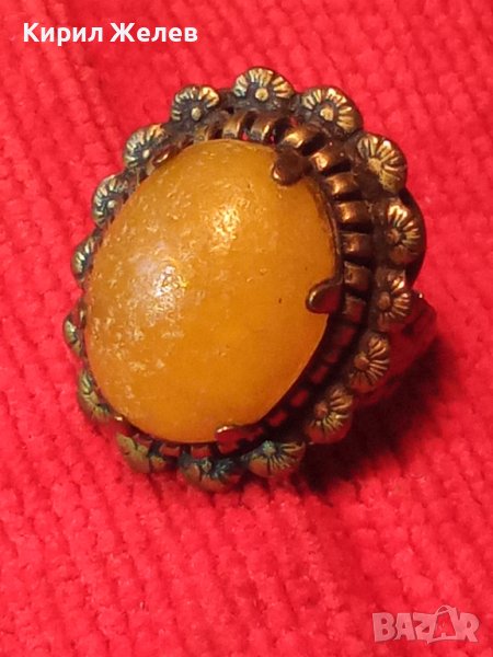 СТАРИНЕН ЮВЕЛИРНА РЪЧНА МАЙСТОРСКА ИЗРАБОТКА АРТ-ДЕКО БРОНЗОВ ПРЪСТЕН с ЖЪЛТ КАТАЛИН 21631