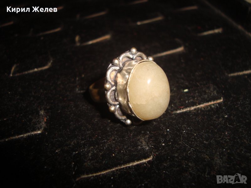 ПОСРЕБРЕН БРОНЗОВ СТАР ВИНТИДЖ ПРЪСТЕН с НАТУРАЛЕН ОПУШЕН КВАРЦ АРТ-ДЕКО ПЕРИОД 20269