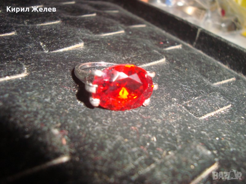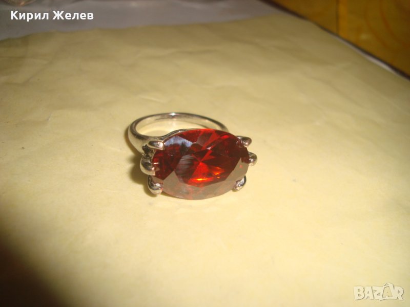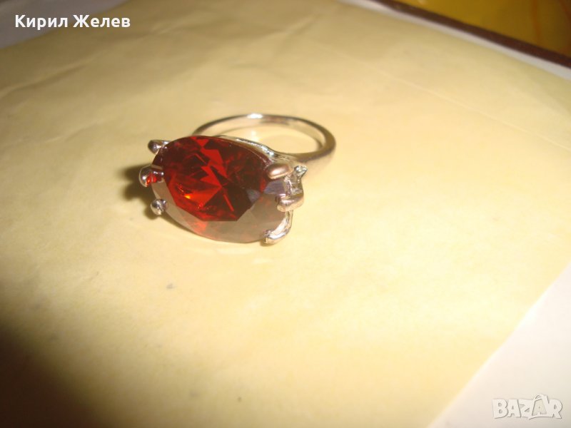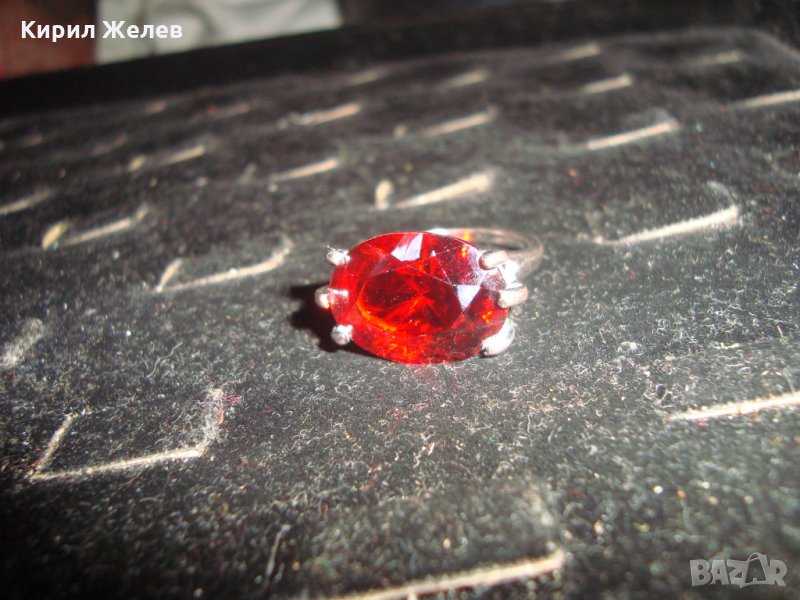 ВИНТИДЖ ПОСРЕБРЕН ПРЪСТЕН с ГОЛЯМ ФАСЕТИРАН СИНТЕТИЧЕН КРАСИВ РУБИН 20273