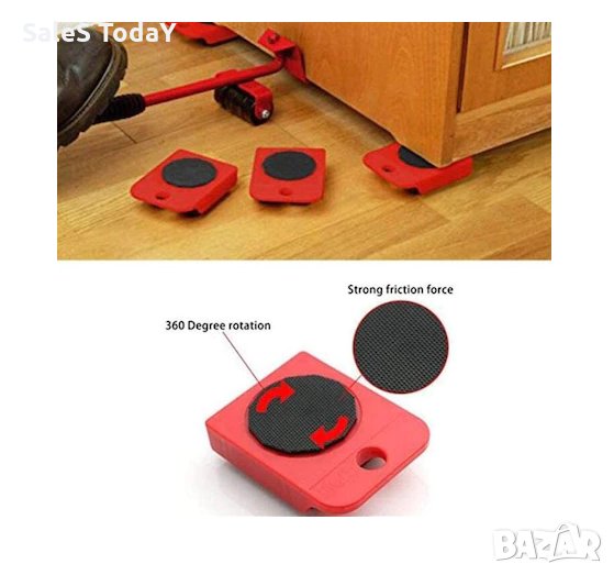 Комплект за преместване на мебели и тежки предмети .До 350 килограма . Всяка основа с колелца издържа до 150 килограма .