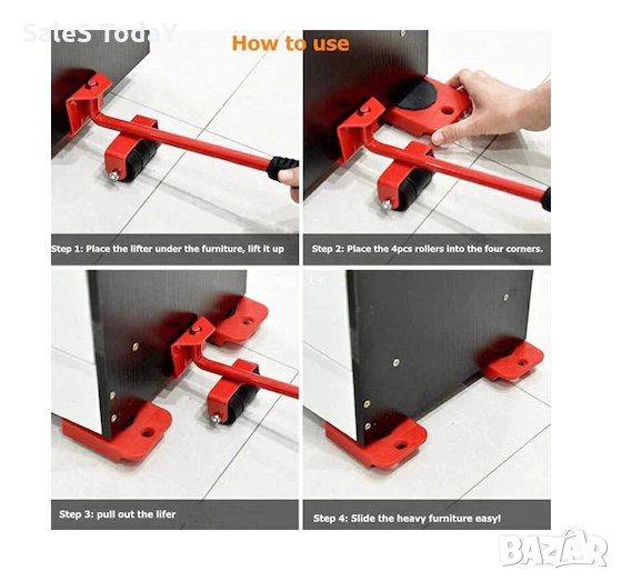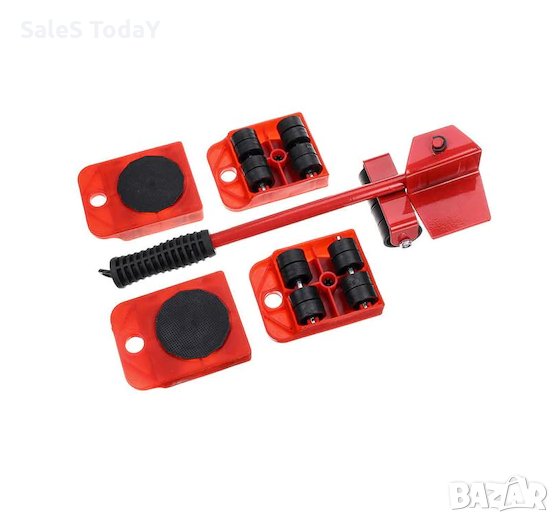 Уред за преместване на мебели, до 300 кг., стоманен уред от 5 части, червен