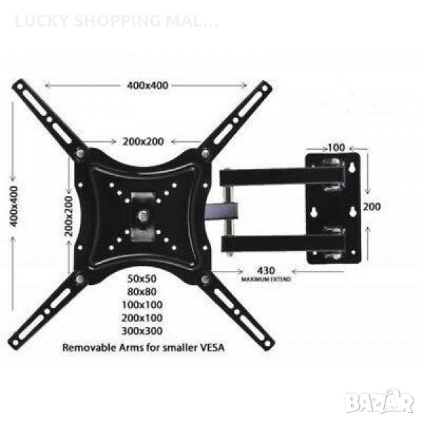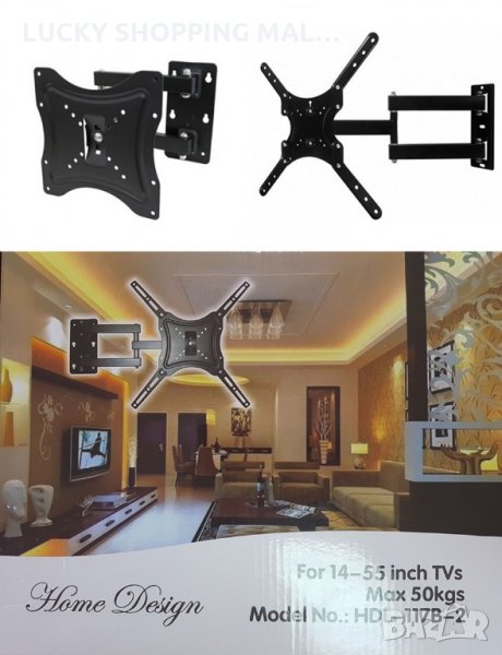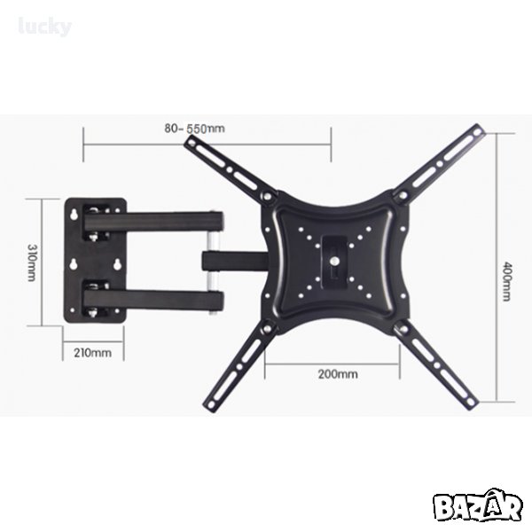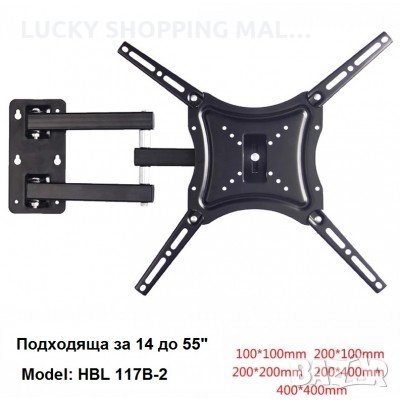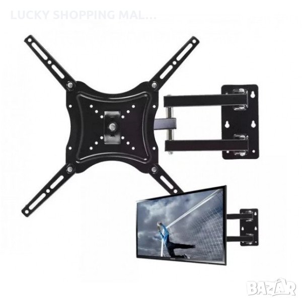 Стойка за телевизор с чупещо рамо за поставяне на стена. Подходяща за плоски телевизори от 14 до 55 инча.