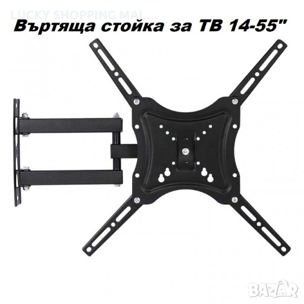 Стойка за телевизор с чупещо рамо за поставяне на стена. Подходяща за плоски телевизори от 14 до 55 инча.