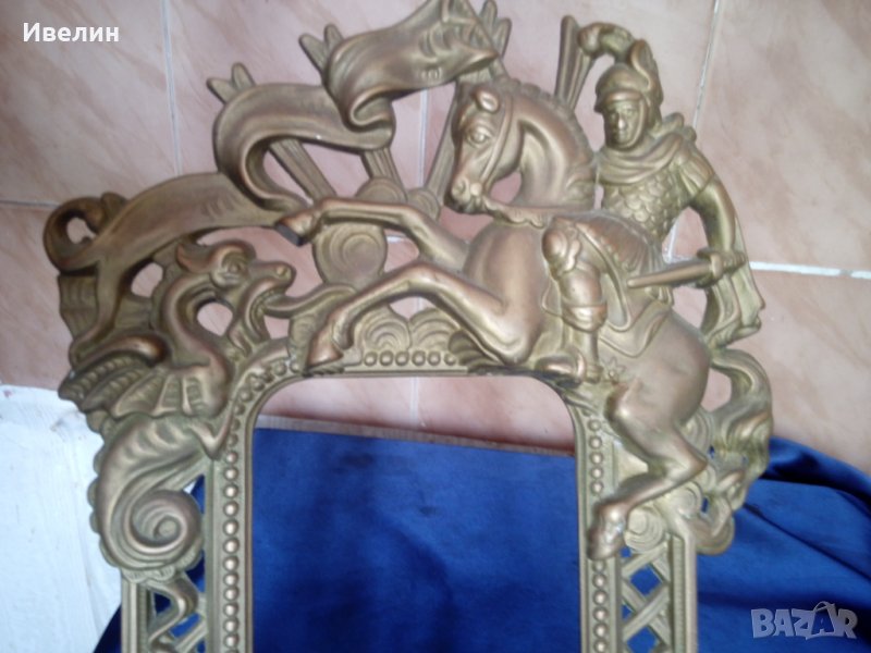 стара рамка за снимка от бронз-свети георги убива змея.размери33см/19см,вътрешни 13см/9см.
