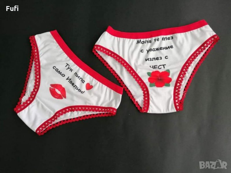 10лв, прашки или бикини и боксерки с индивидуални надписи и или картинка, само бели → Обява 32571020