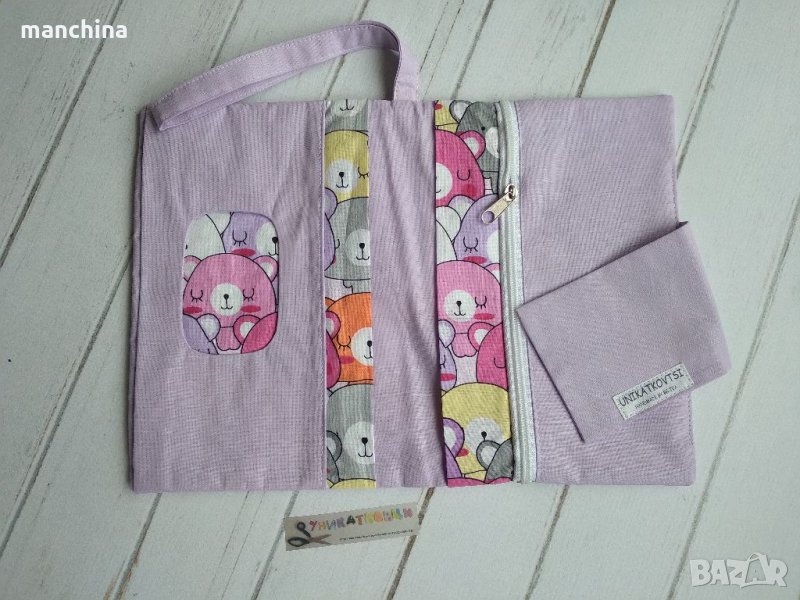 Ръчно изработен органайзер за пелени/памперси с 4 отделения-място за пелени, мокри кърпички и отделение с цип за по-дребни необходимости по време на разходка