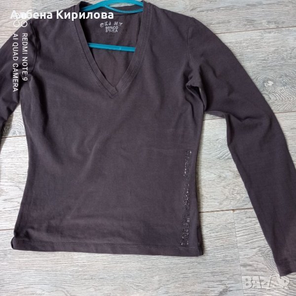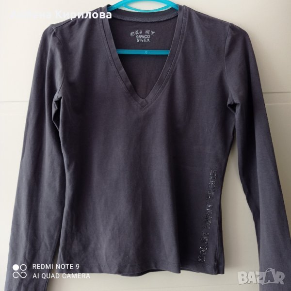 Сиво графитена блуза на C. Клайн, М размер. Еластична, вталена с блестящи елементи на логото. Дълга 50см, ръкав 57см. Но разтегливост