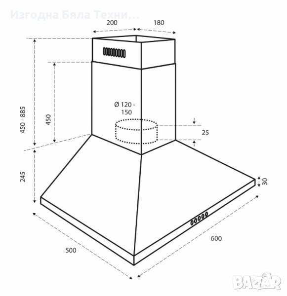 Диаметър на изтичане: 120 - 150 мм