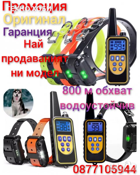 ЕЛЕКТРОНЕН НАШИЙНИК ЗА КУЧЕ КАИШКА С ТОК КОМАНДИ ДО 800М ОБХВАТ