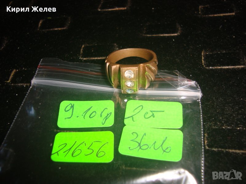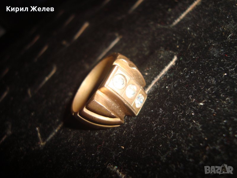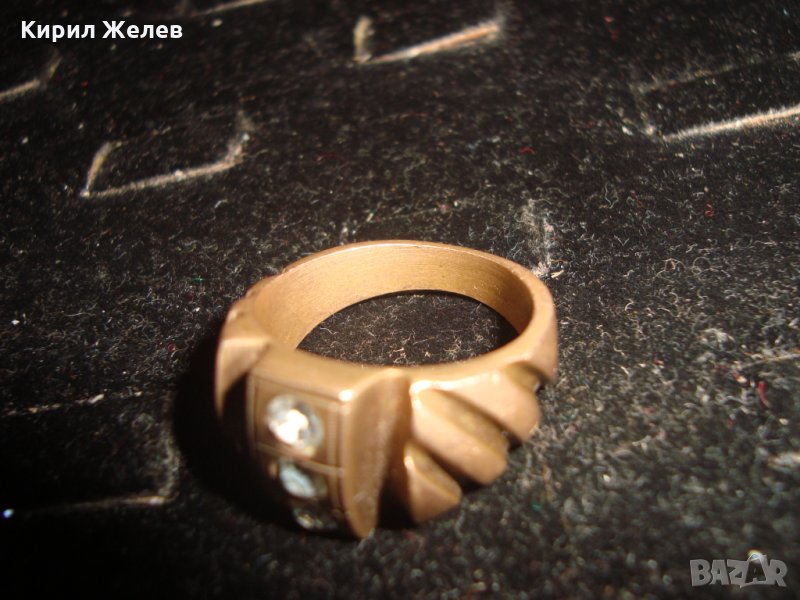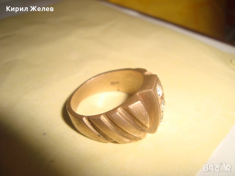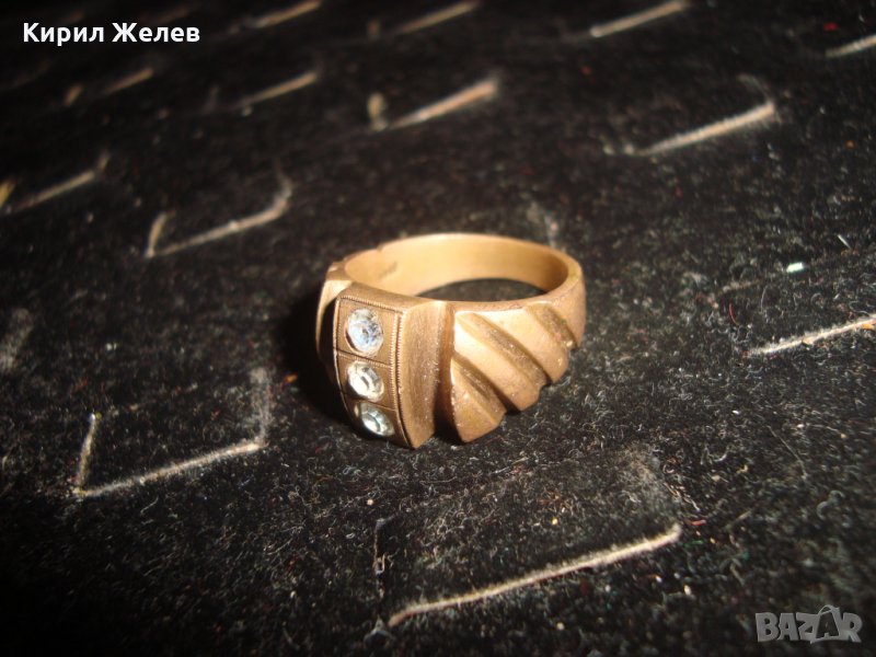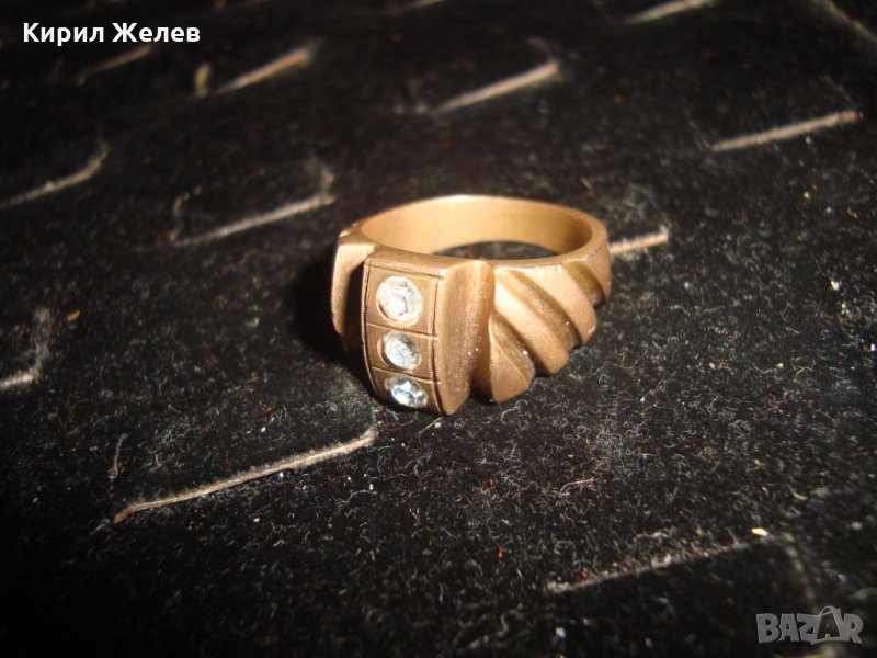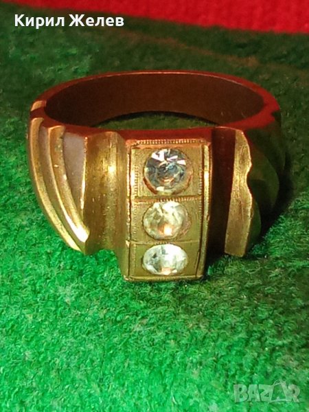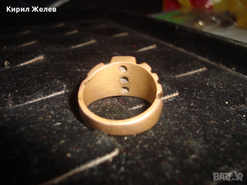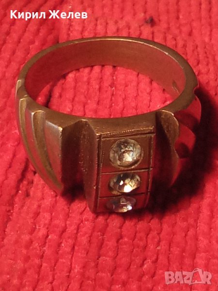 СТАРИНЕН БРОНЗОВ ПРЪСТЕН с 3 ИНКРУСТИРАНИ ЦИРКОНА и ПЕЧАТ - ЮВЕЛИРНА ИЗРАБОТКА 21656