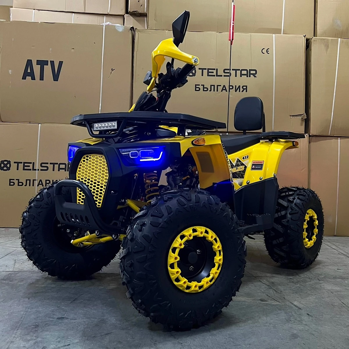 ATV SAMURAI ROVER LONG 150CC С 8``ГУМИ, АВТОМАТИЧНА СКОРОСТНА КУТИЯ И SMART КИЛОМЕТРАЖ ВИСОК КЛАС предни демферни регулируеми амортисьори 4 степени БЕЗПЛАТНО: Задна кожена облегалка + 2 броя дистанционни с аларма, имобилайзер и запалване от разстояние, както и огледала за обратно виждане + 2 броя ТЕХНИЧЕСКИ ПАРАМЕТРИ: Двигател- двигател LONCIN 150 кубика Батерии- 12V/5AH Окачване- ВИСОК КЛАС предни демферни регулируеми амортисьори 4 степени Запалване- електрически стартер Капацитет на резервоара- 3 литра Трансмисия- R-N-D автоматична скоростна кутия с 3 скорости + задна, верижна Спирачна система- предни и задни хидравлични дискови спирачки Гуми- предни/задни 8`` Тегло- 110кг Товароносимост- 160кг Размер на опаковката- 138X76. 5X63CM Размер в завършен вид- 138X76. 5X63CM Допълнителна информация: - SMART цифров километраж с показание за обороти, скорост, светлини, изминато разстояние и др. - с усилено шаси -предна метална броня - с усилена багажна конструкция - удебелени рами - протектори за ръцете - окачване с шарнири, не с втулки - клаксон - предни диодни фарове с лупи, LED мигачи, LED габарити, заден стоп - БЕЗПЛАТНО: Задна кожена облегалка + 2 броя дистанционни с аларма, имобилайзер и запалване от разстояние, както и огледала за обратно виждане + 2 броя -Налични цветове: син, жълт, оранджев АТВ-то Е НОВО. ПОСОЧЕНАТА ЦЕНА Е СКЛАДОВА ЗА АТВ В КАШОН! Изпращаме по куриер до офис и до дома на клиента. За повече инф. посетете нашият сайт-motorcycles. bg или на тел. 0887302625