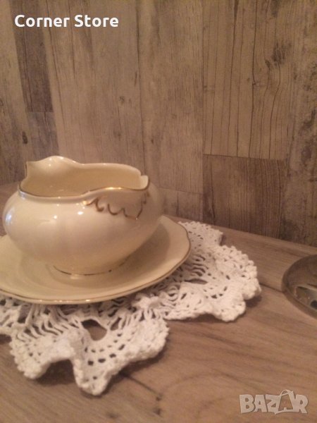 Сосиера немски костен порцелан,слонова кост,с прикрепена чинийка златен кант и орнаменти
