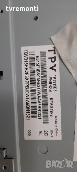 T-CONTROL BOARD HV320FHB-N00 47-6021051 Борда е гарантирано работещ Демонтиран от телевизор PHILIPS модел 32PFH4101/88 със счупен дисплей TPT315B5-FHBN0.K REV.S49P2F тествана от нашия техник за повече инфо