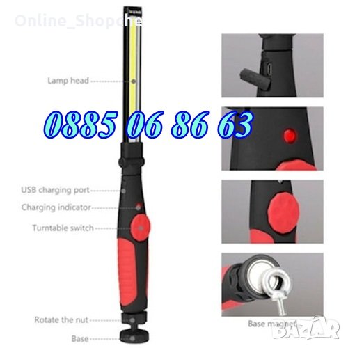 LED РАБОТНА ЛАМПА С МАГНИТ прожектор, лампа фенер с магнит, 37 см
