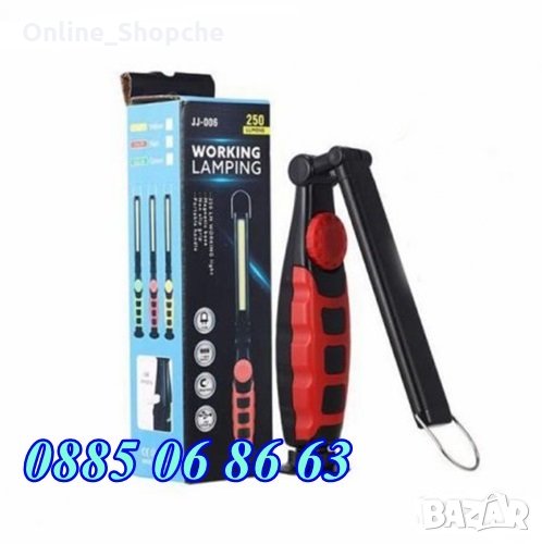 - Приложение: може да се използва като работна помощна лампа, в автомобил, работилница, къмпинг, палатка и други, след като я заредите.