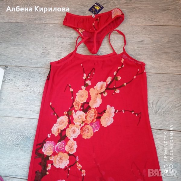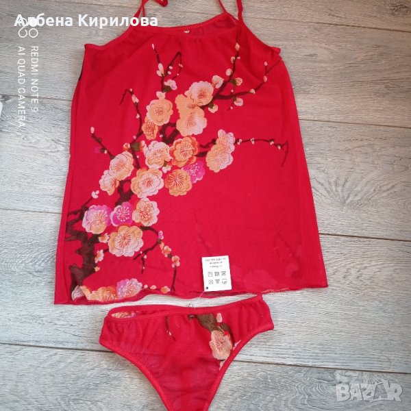 Нов комплект в червен цвят и цветя, българско производство. М по-скоро размер, макар че е маркиран L. С прашки