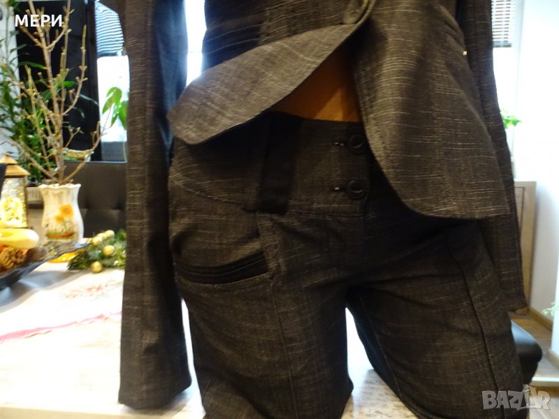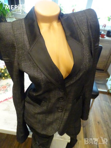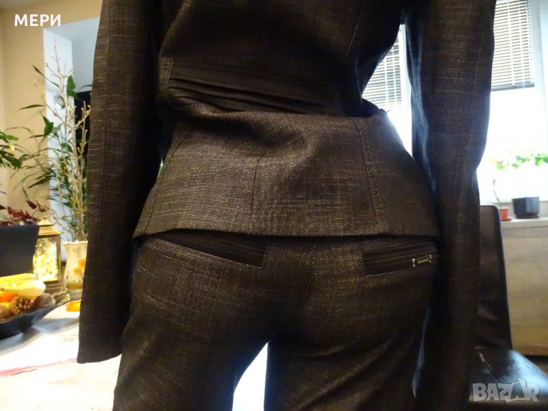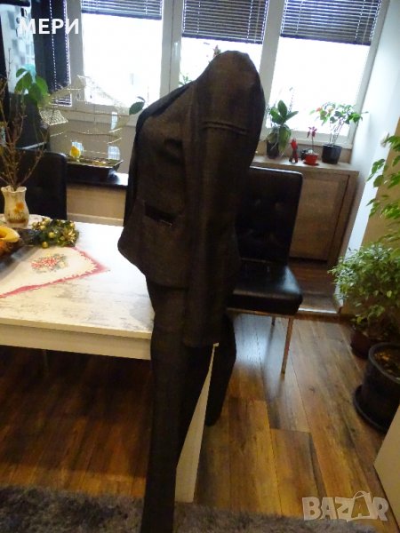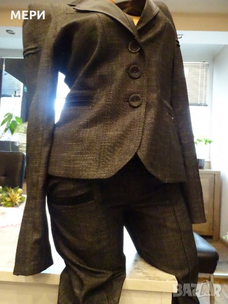 Дамския костюм е НОВ. На марката Junona. Купуван е за 110 лв. / ПРОДАВА СЕ НА ИЗГОДНАТА ЦЕНА ОТ 60 лв. / Обличан е само веднъж за едно официално мероприяте. Поради качване на кг. неуспях да го нося. Много красив модел, става както за официално мероприятие, така и за делови срещи. Много качествен като материя. Пада тежко, не се мачка.