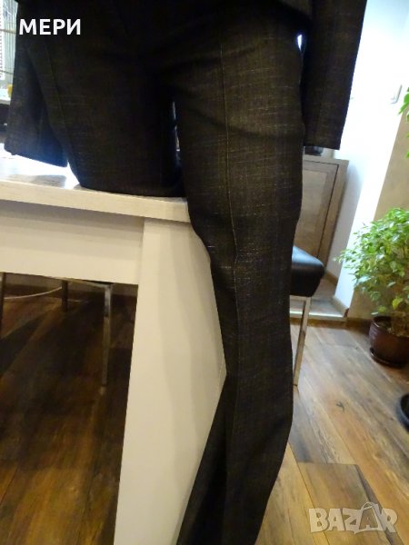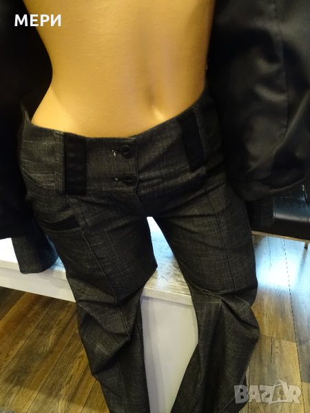 като линия, а панталона е падащ, по - широк модел като кройка на долу.