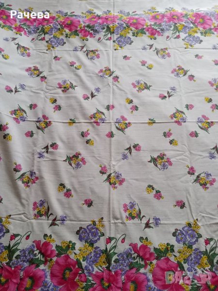 Нов, български плат. 100% памук. Размери дължина 2,20 метра, Ширина 1,50 метра. Цената е за целият плат. Изпращам със Еконт или Спиди. Разполагам с още един същият десен с леки дефекти в щампата. При него цената е 10 лева.
