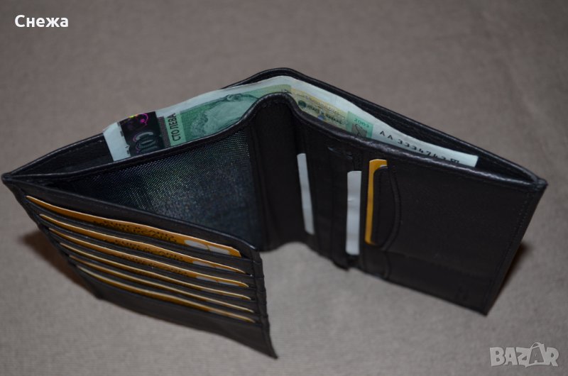 - 1 отделение за банкноти. Метално лого с надпис на фирмата от отпред на портфейла и надпис на фирмата от вътрешната страна на портфейла. Портфейла е със следните размери: