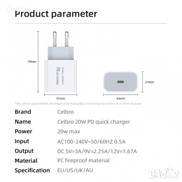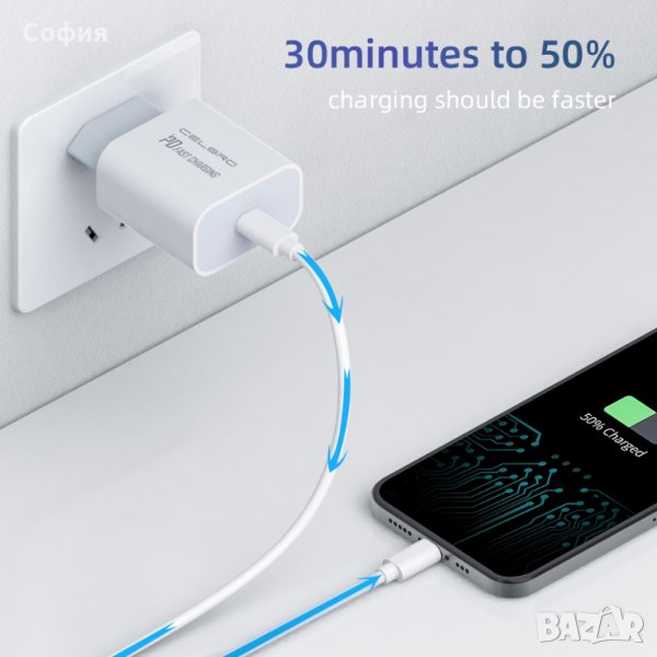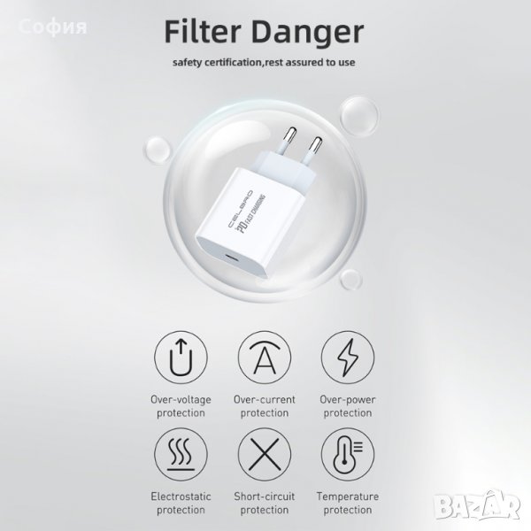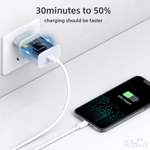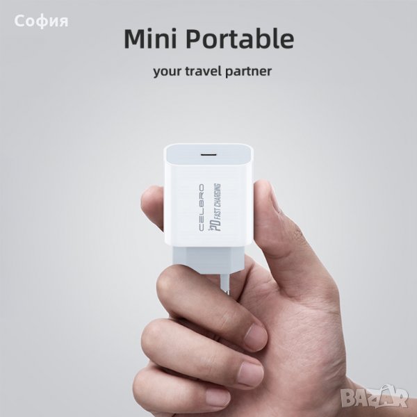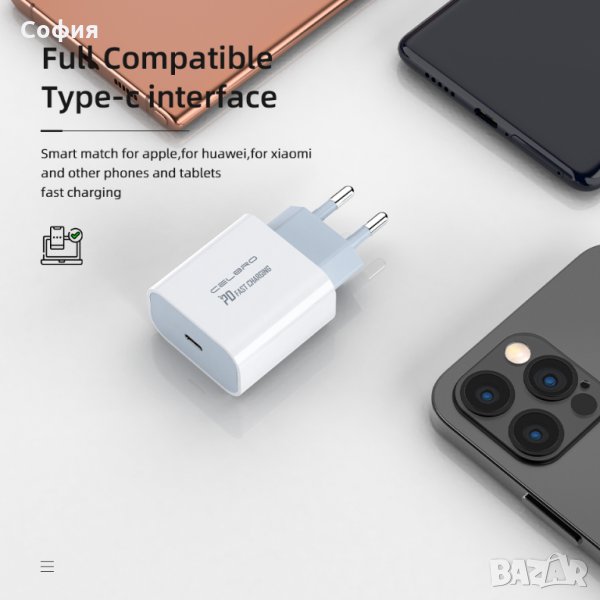 Висококачествен, мощен адаптер Type C 20W fast charger с чип за бързо зареждане. Подходящ за iPhone и за всички нови модели смартфони и таблети. Материал PC огнеупорен материал. Вход 100 - 240V.