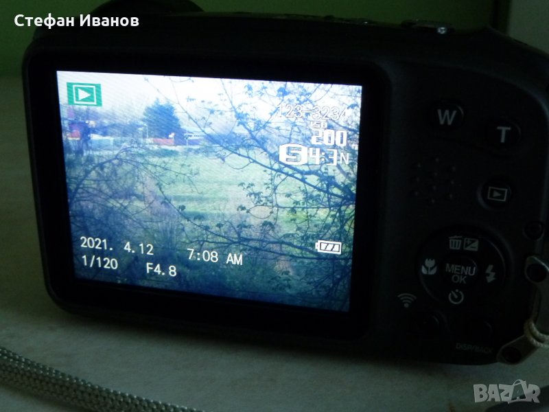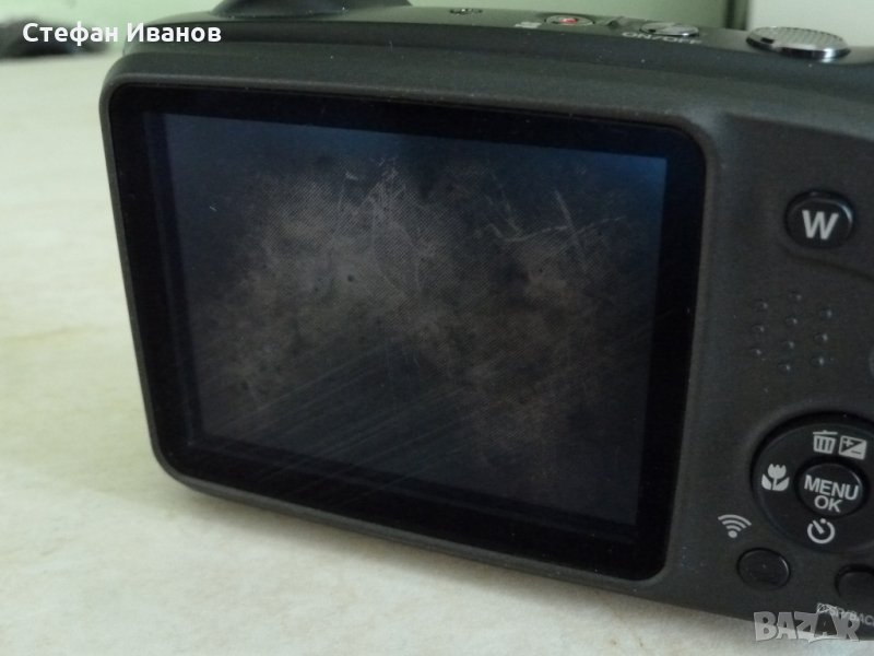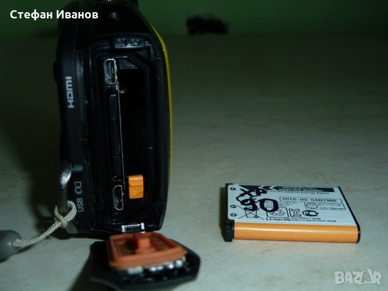 Със следните основни техн. данни: 5х оптично увеличение, 16м.п., меню на български език, дисплей 3", WI-FI свързаност, възможност за дистанционно управление от смартфон, видео HD 1920 x 1080, MPEG 4, H.264. micro HDMI изход - кабелът не е наличен. работна среда - до -10 градуса, издържа на изпускане от 1,7м., и във вода до 15м., но не ви съветвам да се ползва за подводно снимане - след около 3 г. може вече да е нарушена херметичността. Прави мн. хубави снимки на естествена светлина / дневна/, на изк. осветление - не чак толкова - трябва да се пробва с ръчни настройки. Единствена козметична забележка е малко потъмняване на външното предпазно стъкло на дисплея, което се вижда само при изключен фотоапарат и не влияе по никакъв начин на снимките / сн. 10 и 11 /.Много добра оригинална батерия. Зарядно от телефон, което се разпознава от фотоапарата, може да се зарежда и от компютър. Цена 100лв. Последна цена. Ако никой не го купи, остава за колекция. Както съм писал по-горе - фотоапарата е напълно работещ. Продава се само на регистриран потребител от сайта, който изпрати съобщение с данните за доставка или лично предаване. Можете да зададете въпроси отн. фотоапарата на лично съобщение.