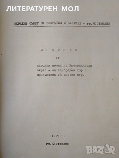Кюстендилски народни песни. За еднороден хор и приложения за смесен хор 1972 г. → Обява 32612741